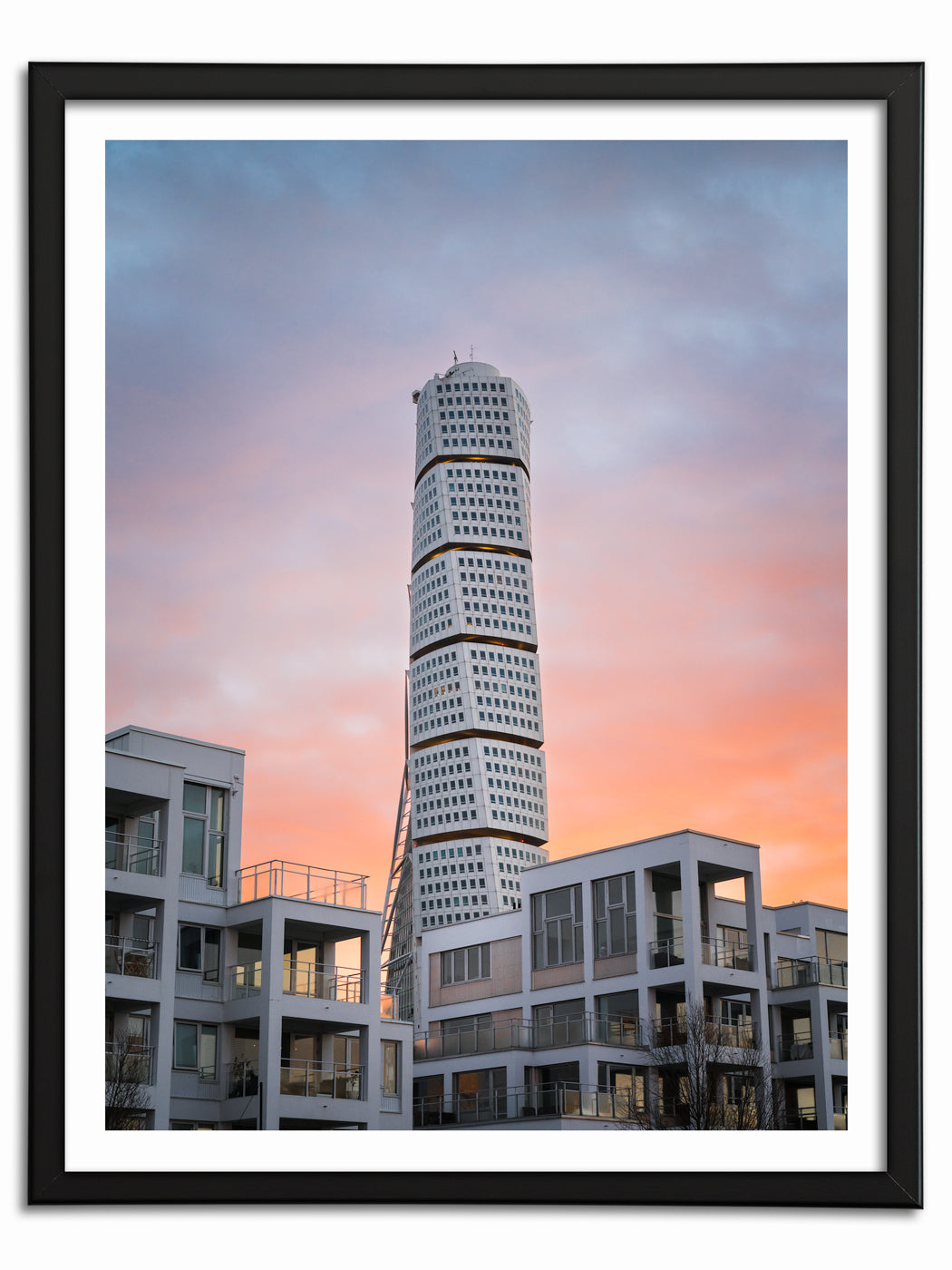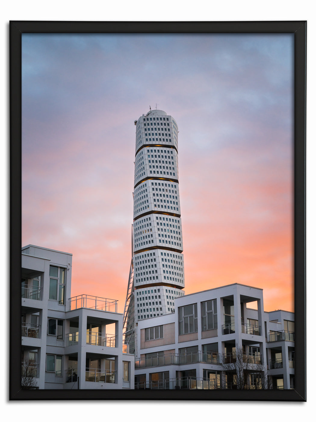 Himmeln bakom Turning Torso i BO01 färgades alldeles orange.