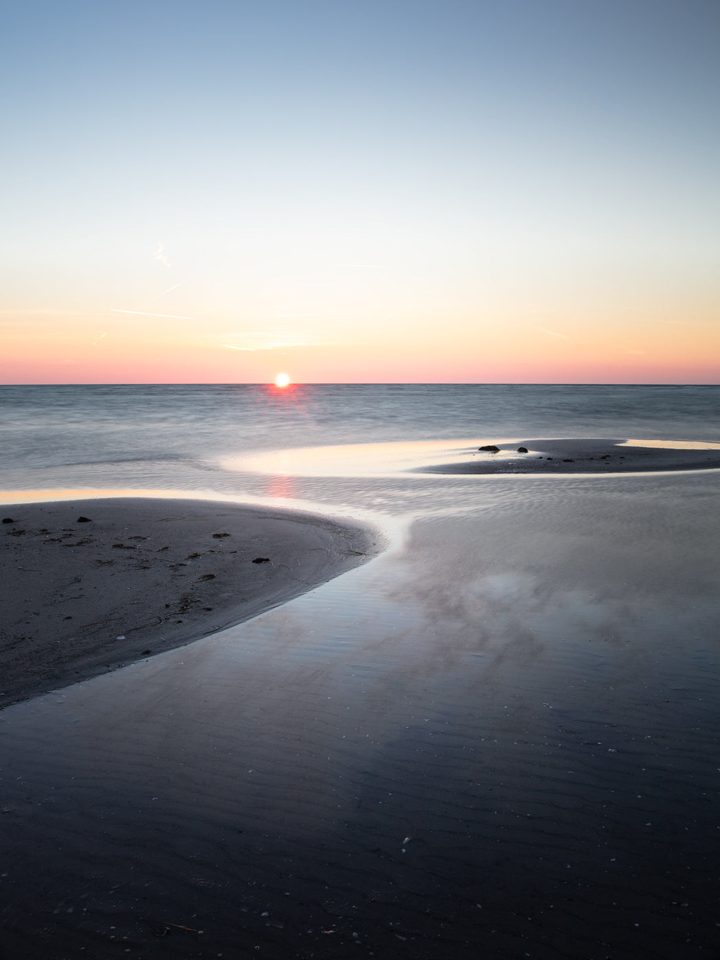 En tidig morgon längst söderut på spetsen på Måkläppen kikar solen upp över horisonten.