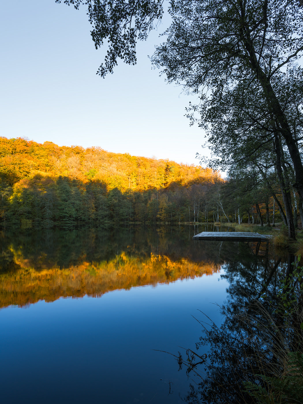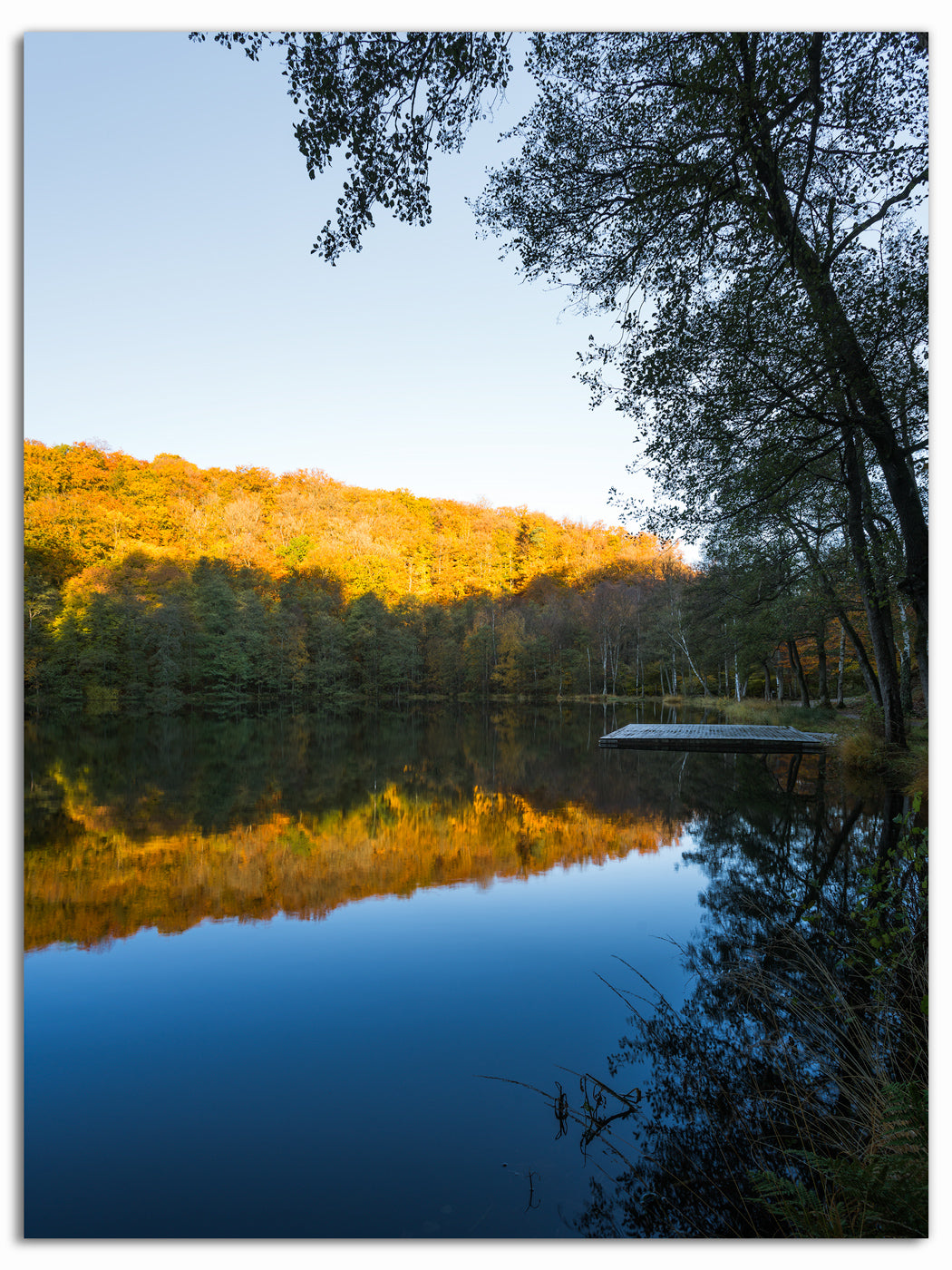 Solen stiger sakta upp över Söderåsens Nationalpark och Odensjön ligger spegelblankt under träden.